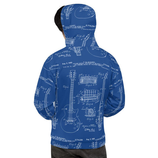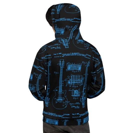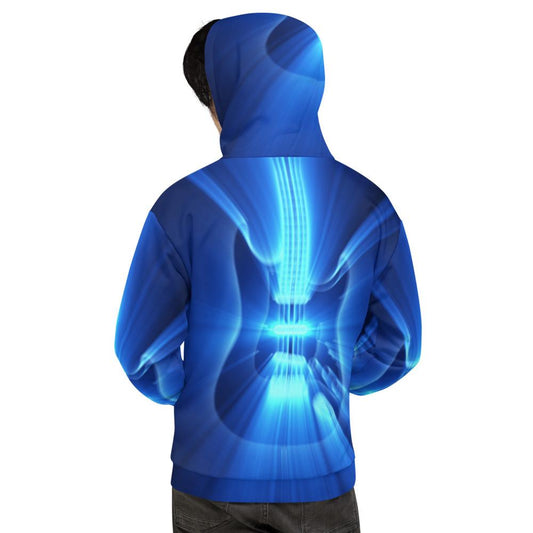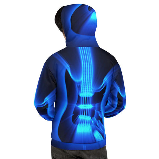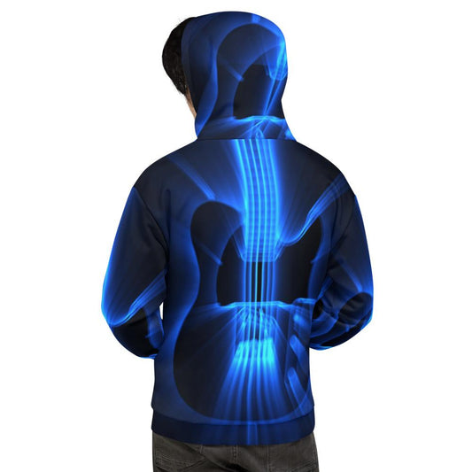Guitar God Rays Blue STR All-Over Print Hoodie