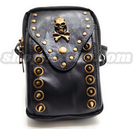 Skull and Bones Spike Studded Zippered Shoulder Bag Goth Emo