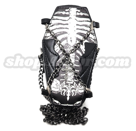 Coffin Purse Goth Emo Zippered Shoulder Bag Skeleton Graphic