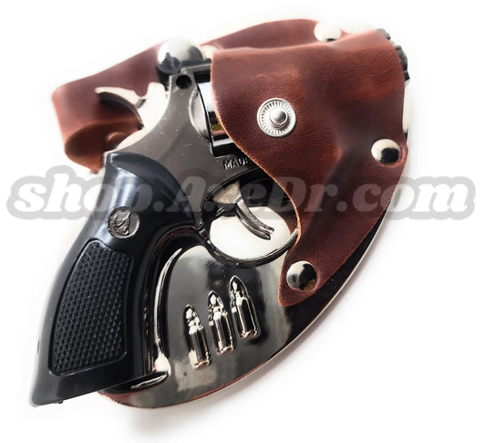 Snub Nose Revolver Pistol Jet Lighter Rotating Cylinder Belt Buckle