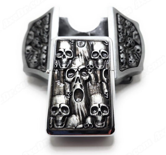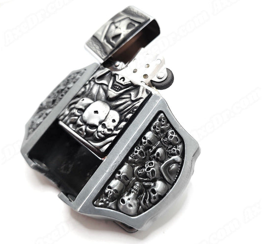 Skulls & Fangs Belt Buckle with Hidden Lighter – Gothic Heavy Metal Accessory for Men – Skull Flame Design – Functional Novelty Gift for Bikers, Rockers, Punk & Goth Styles
