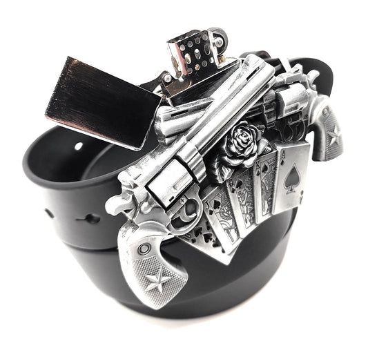 Spinning Revolvers Lighter Belt Buckle and Premium Leather Belt