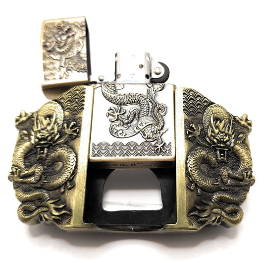 Triple Dragons Bronze Lighter Belt Buckle / Flip-Style Lighter Holder Buckle