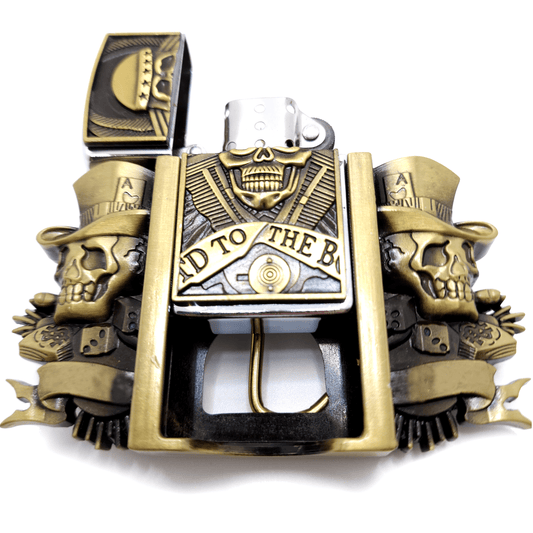 Triple Joker Skulls Bronze Lighter Belt Buckle with Smiling Skull Lighter Holder Buckle