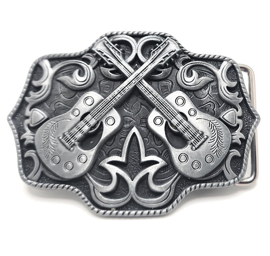 Dual Guitars Belt Buckle / Crossed Guitars Belt Buckle