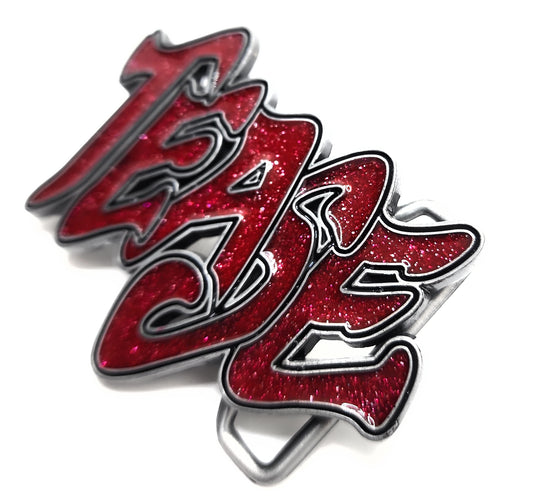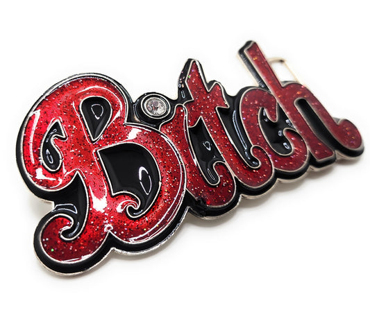 Red "Bitch" Bubble Letter Belt Buckle with Rhinestone Funny
