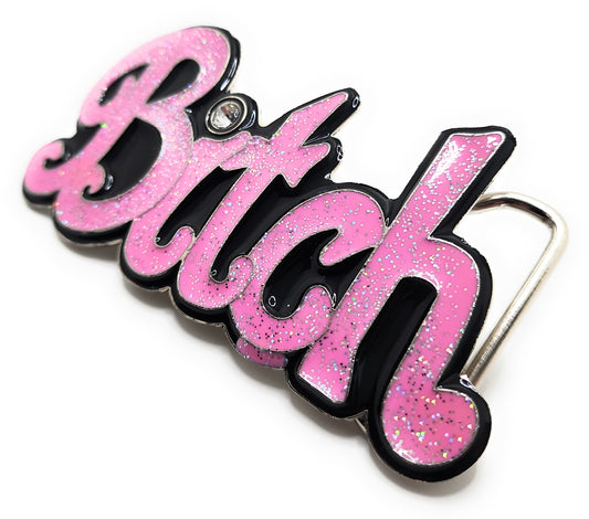 Pink BITCH Bubble Letter Belt Buckle with Rhinestone Funny