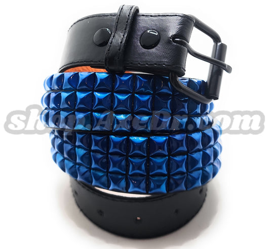 Handmade Pearl Blue Pyramid Studded Stitched Leather Belt Punk