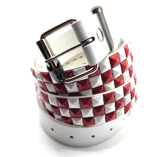 Deep Red & Black Checkered Pyramid Studded Belt Punk