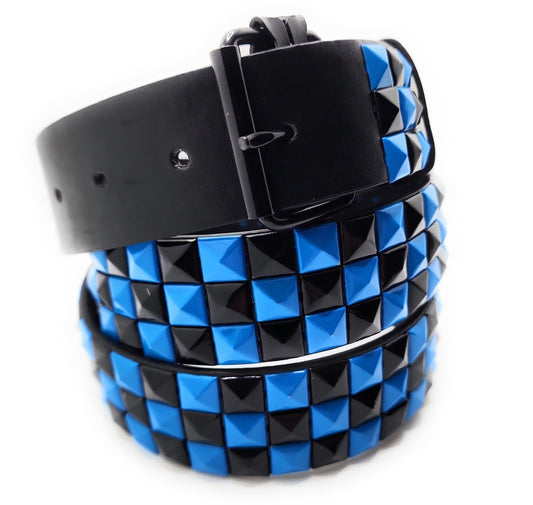 Handmade Pearl Blue Pyramid Studded Stitched Leather Belt Punk