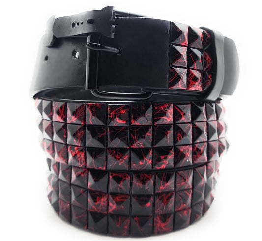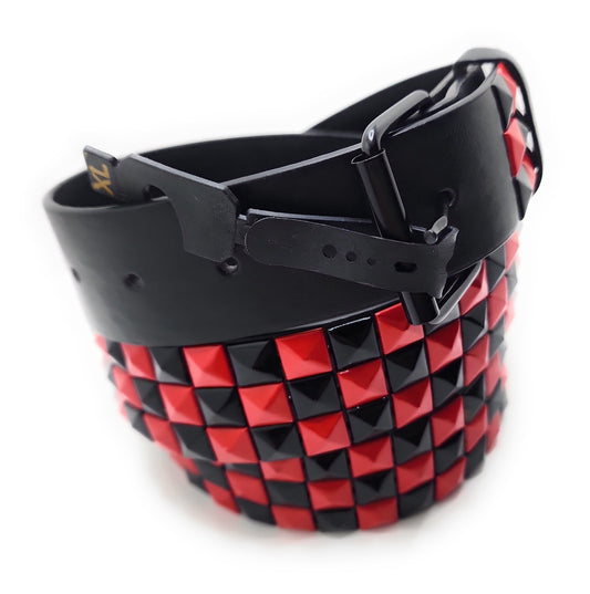 Deep Red & Black Checkered Pyramid Studded Belt Punk