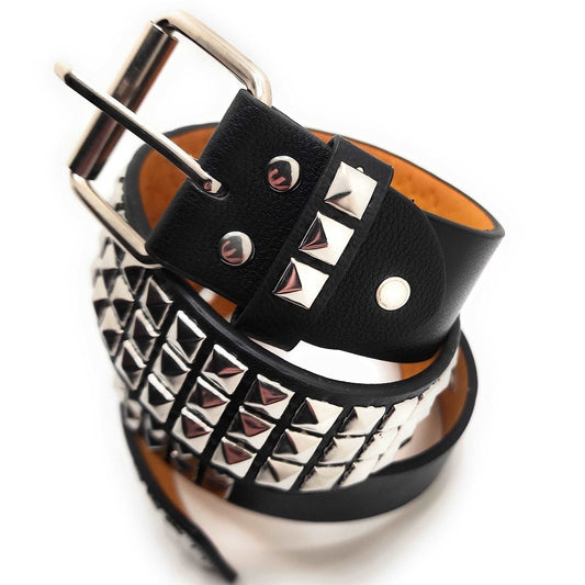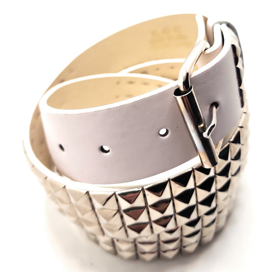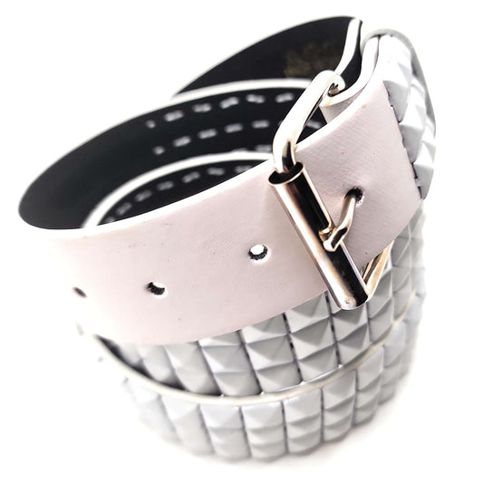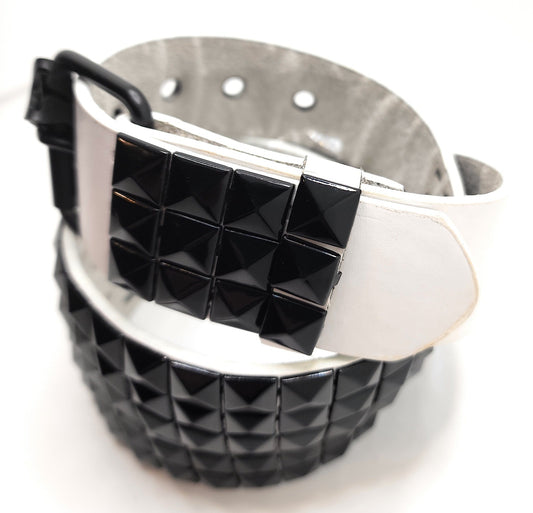 White Belt Black Studs Pyramid Studded Leather Belt Punk