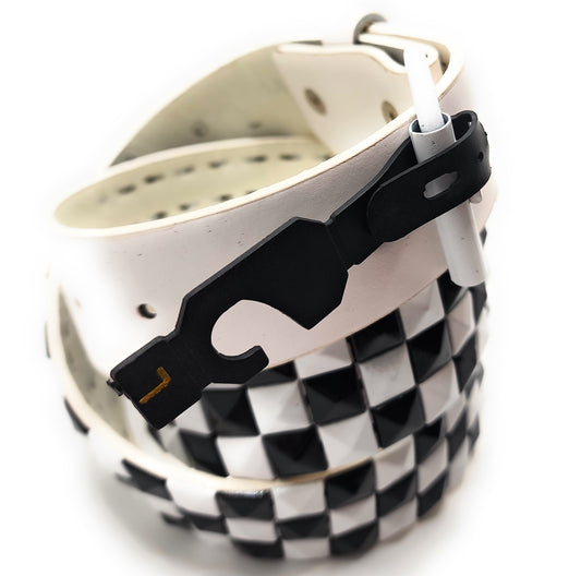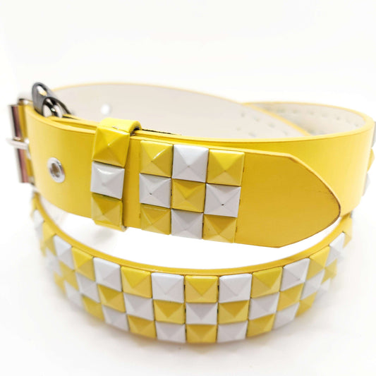 White Black Checkered Pyramid Studded Leather Belt Punk