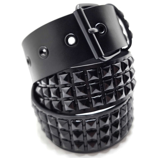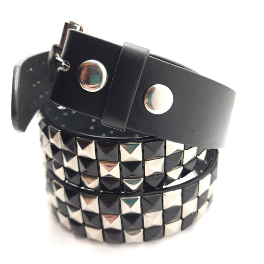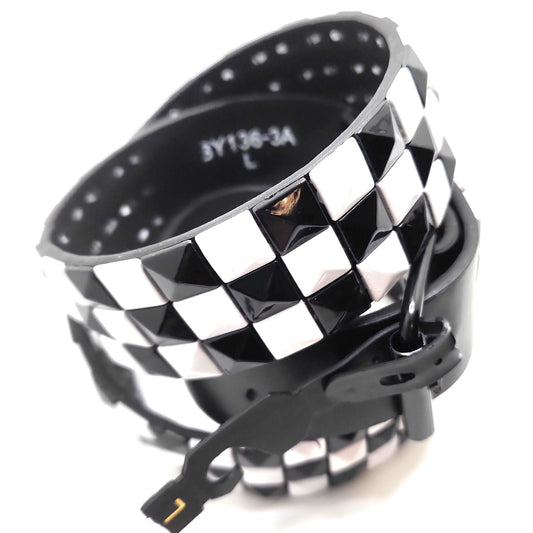Black and White Checkered Pyramid Studded Leather Belt Punk