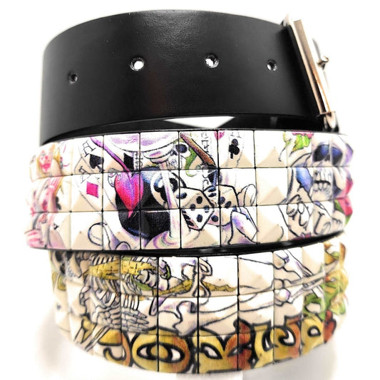 Gambling Skeletons Tattoo Collage Pyramid Studded Leather Belt Punk