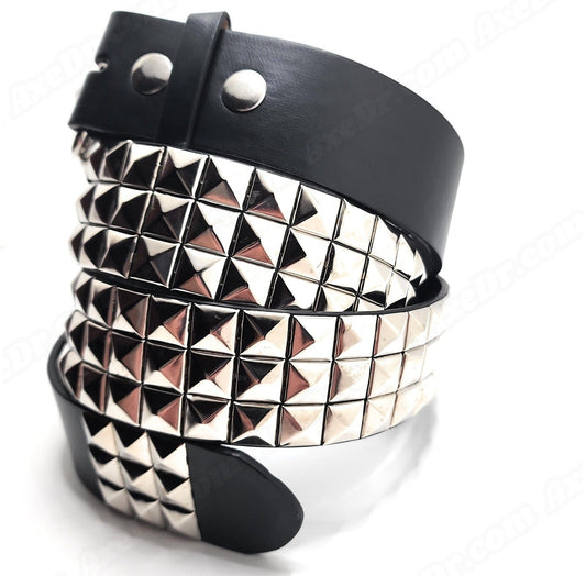 Chrome Pyramid Studded Leather Belt Trim-to-Fit