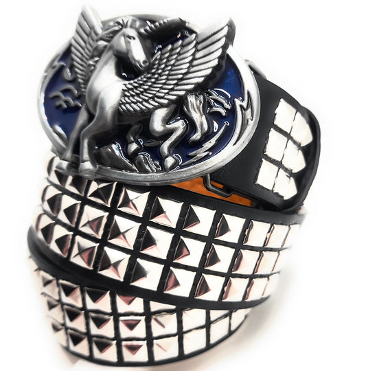 Silver on Black Pyramid Studded Belt Buckle-Friendly