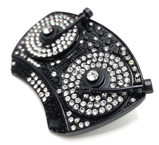 Blinged-Out Rhinestoned Turntable 3D Belt Buckle
