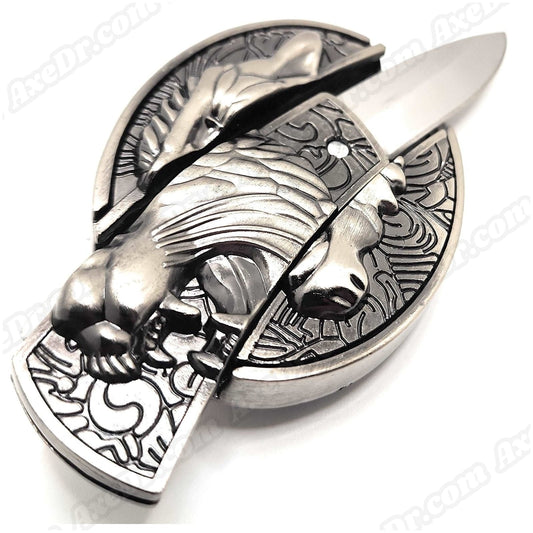 Brushed Copper Wolf Head Folding Knife Belt Buckle Push-Button-Release