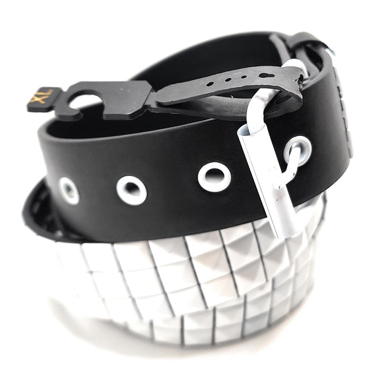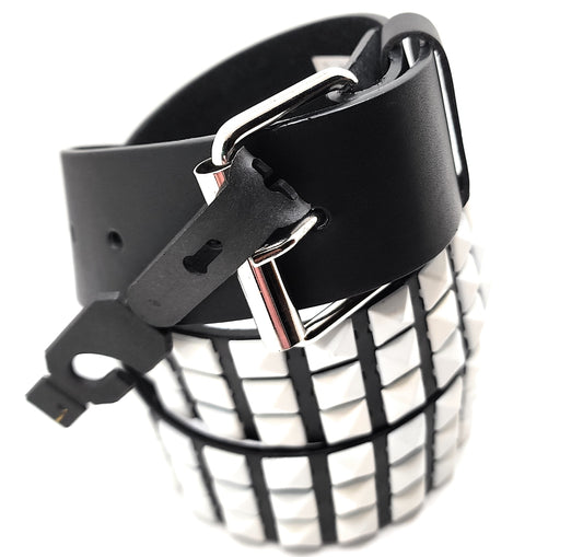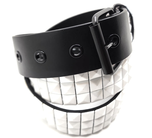 White Studs on Black Pyramid Studded Belt White Hardware Punk