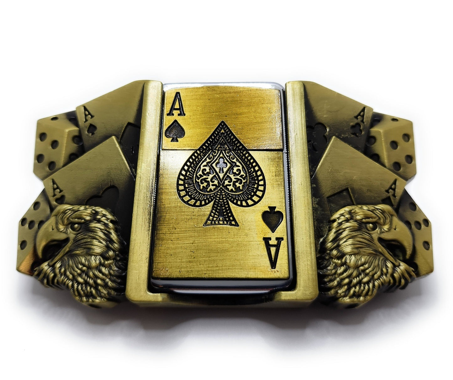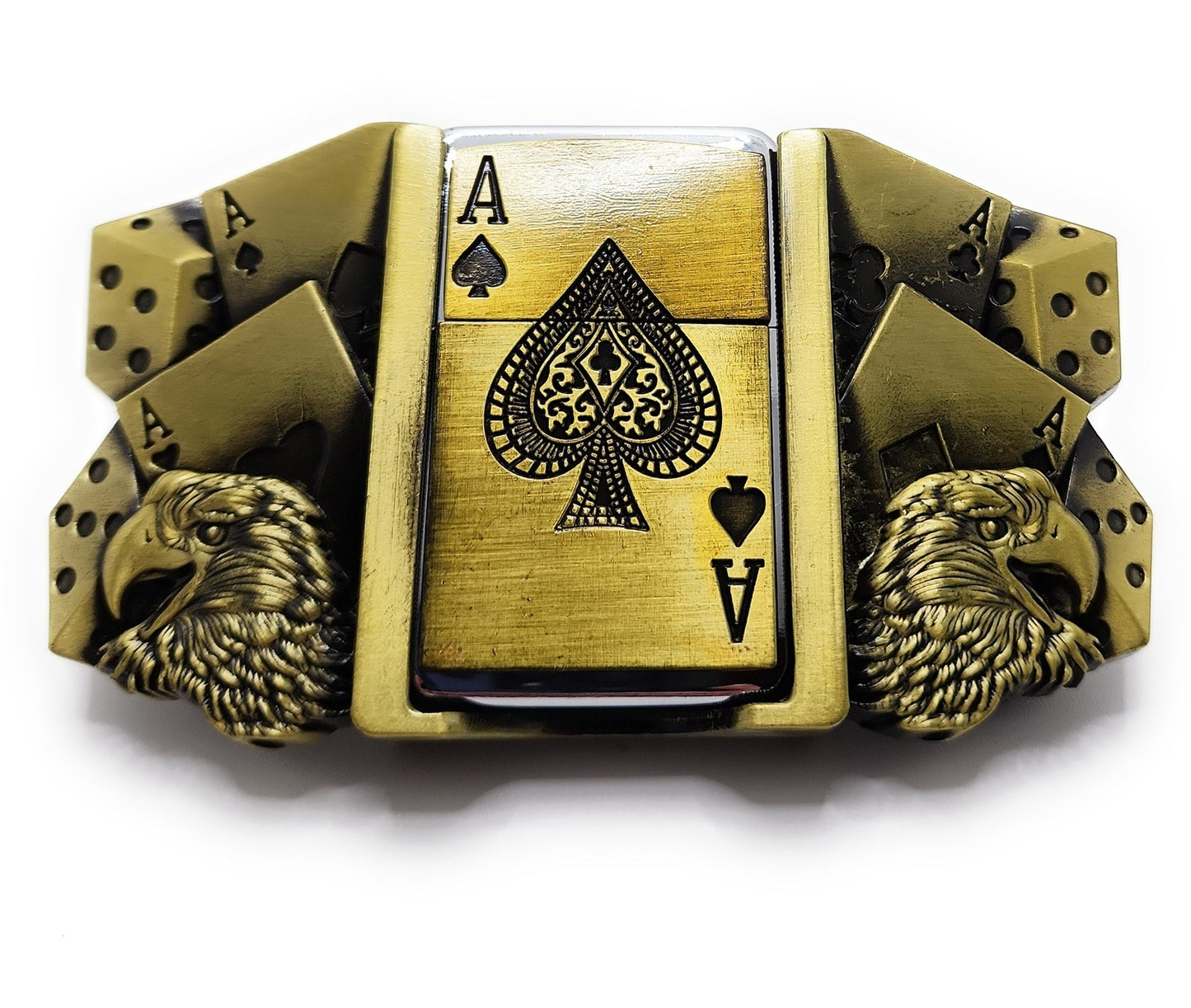 Poker Royal Flush Cinturón Hebilla Encendedor CON Ace of Spades LIGHTER / Texas Hold Em Cards Encendedor Hebilla de cinturón #beltbuckle #lighter #cards #belt