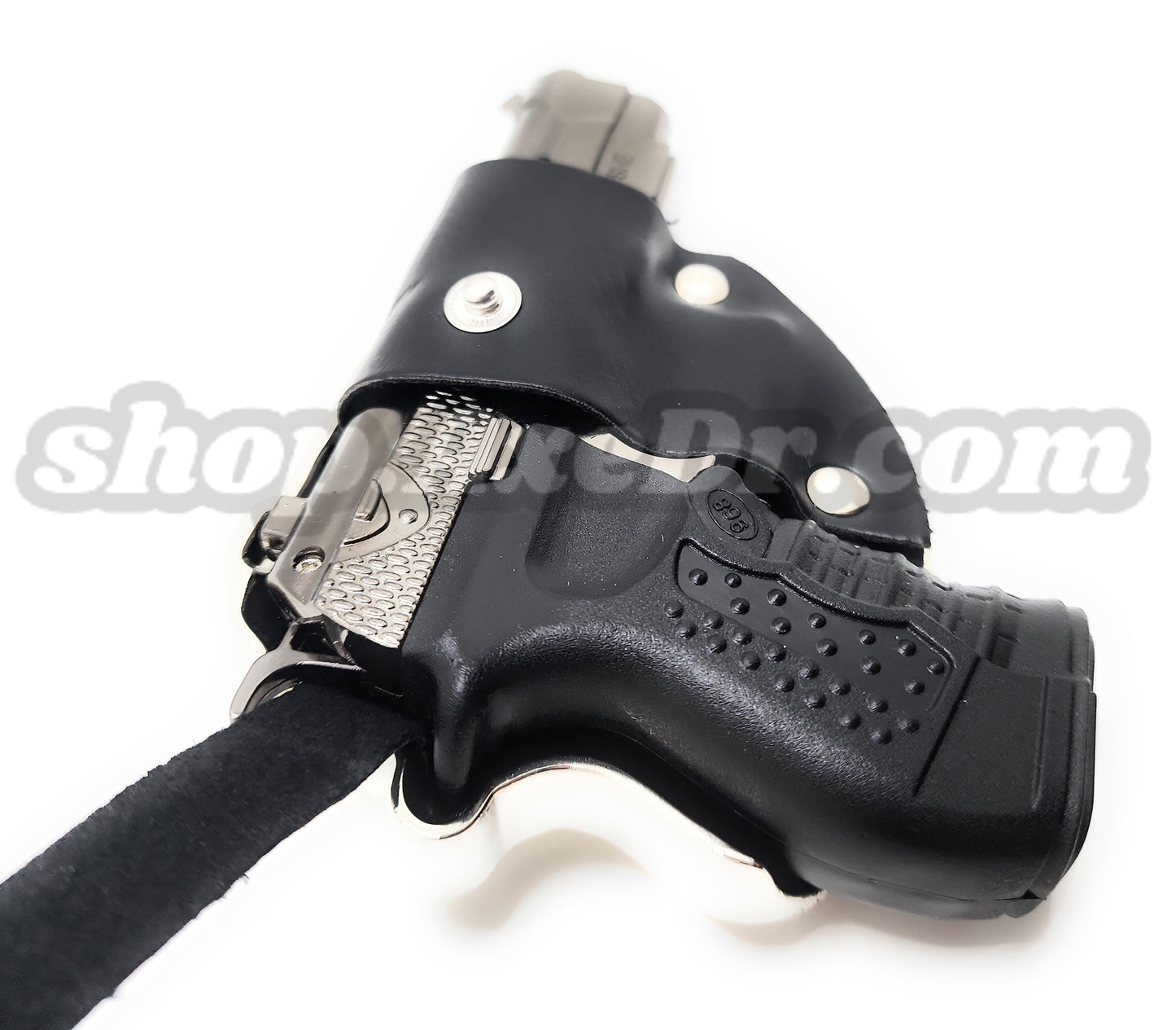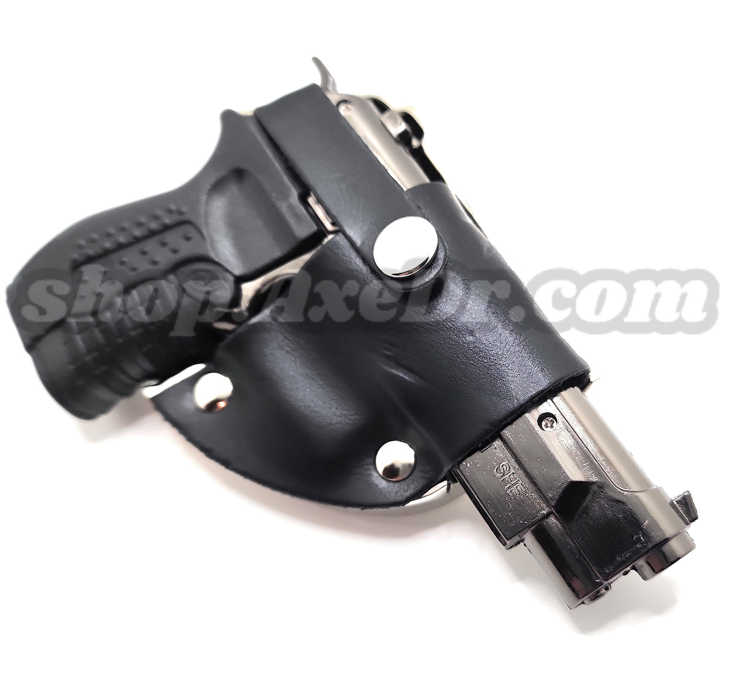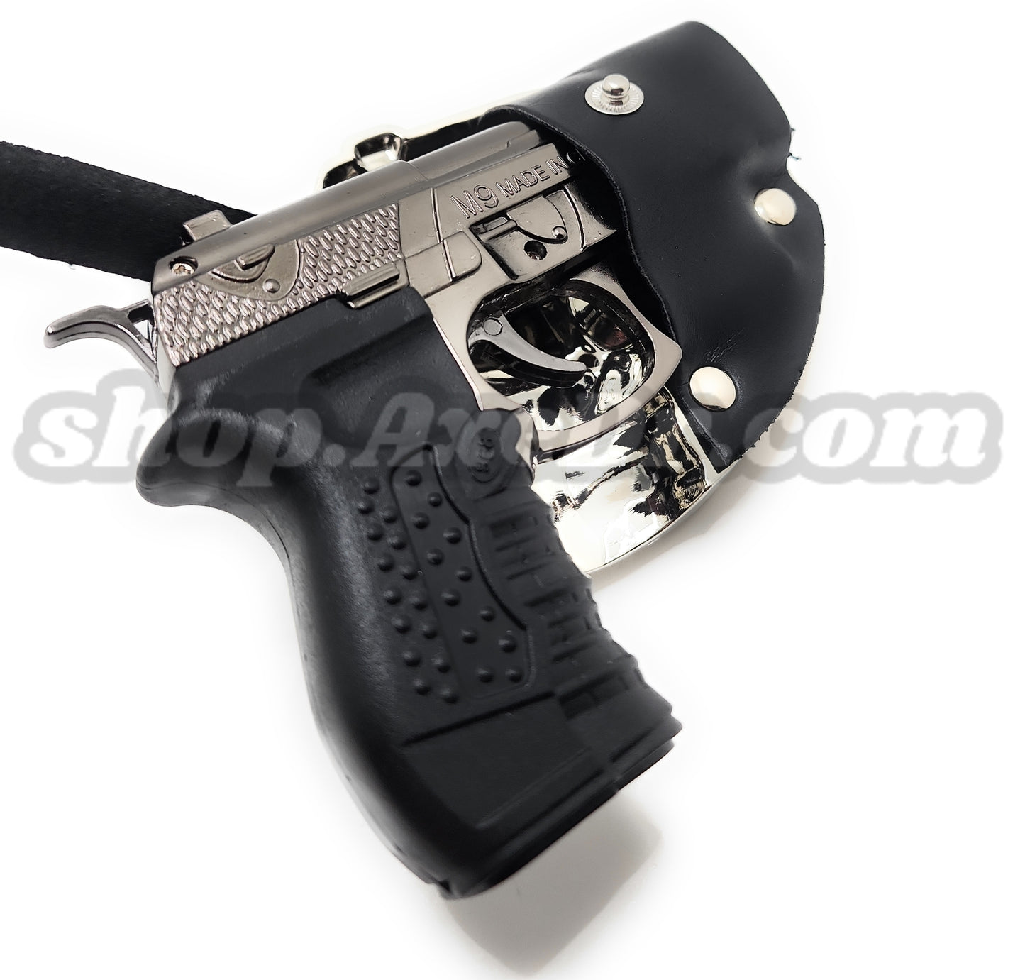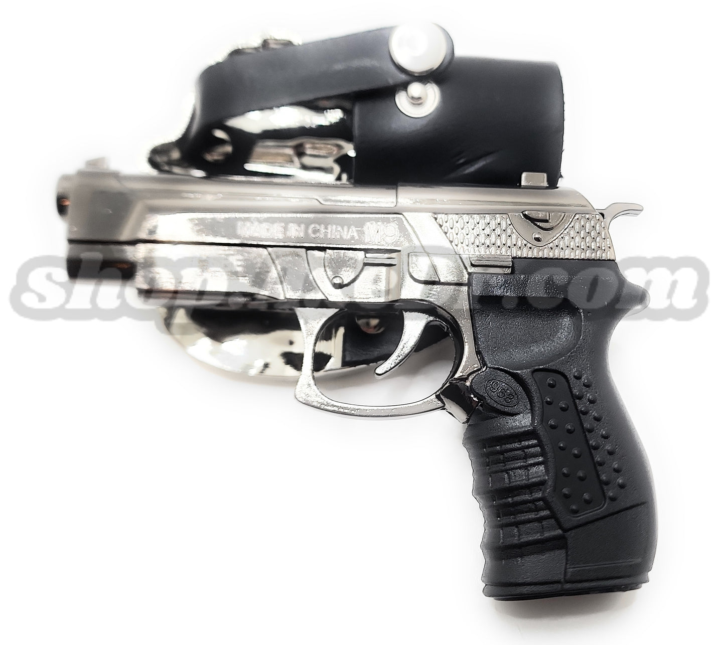 - Lighter Pistol fits safely and securely in its holster buckle and will not come loose.